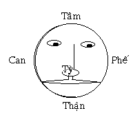 | Tạng Phủ Giác quan Dư ra Thể Chí Dịch Biến động Thanh Âm Chức Cơ năng Thích Ghét Ồ mắt Ồ lưỡi | Can Mộc Đởm Mắt Móng tay chân Gân cơ Giận Nước mắt Co quắp Gọi Giốc Tướng quân Vận động Tỉnh Rung động Tròng đen Rìa trái | Tâm Hỏa Tiểu trường Lưỡi Tóc Mạch máu Mừng Mồ hôi Nhăn nhó Nói Trủy Quân chủ Tuần hoàn Mát Nóng nẩy 2 khoé Đầu lưỡi | Tỳ Thổ Vị Miệng Da Thịt Lo Nước miếng Ọc Hát Cung Cai kho Tiêu hóa Khô ráo Ẩm ướt 2 mí Giữa lưỡi | Phế Kim Đại trường Mũi Lông mao Da Buồn Nước mũi Ho Than Thương Quản trị Hô hấp Hoạt nhuận Khô ráo Tròng trắng Rìa lưỡi | Thận thủy B. quang Tai Răng Xương Sợ Nước tiểu Run Rên Vũ Sức mạnh Bài tiết Ôn Lạnh Con ngươi Cuống lưỡi |